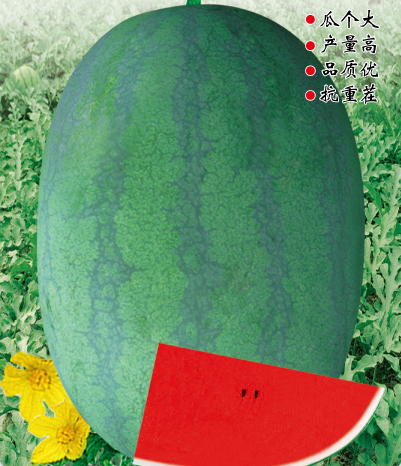 ■ 特征特性 :早中熟種,坐果至成熟28天左右,全生育期90天左右。植株長勢穩(wěn)健,抗病抗逆性強(qiáng),生態(tài)適應(yīng)性廣,易坐果。果實橢圓形,果皮墨綠色底上覆暗條帶,果面光滑無棱帶蠟粉。瓤色深紅,瓤質(zhì)酥脆,中心糖14%左右,口感好,風(fēng)味佳。平均單果重8-10kg左右,大者20kg以上(特殊栽培),一般畝產(chǎn)6000公斤以上。皮厚1.0cm左右,果皮硬度強(qiáng),耐儲運。高抗枯萎病抗重茬,兼抗炭疽病和病毒病,在2年重茬地種植,其產(chǎn)量品質(zhì)無明顯差異。綜合性狀優(yōu)于目前抗病品種。