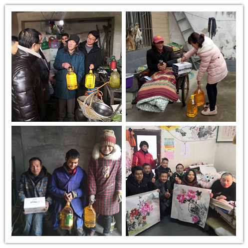 ??? 農資捐贈活動結束后,荃銀農投、基金會、壽縣金豐公社還為壽縣迎河鎮6戶因病因殘等病困家庭送去生活物品和慰問金。因車禍致殘癱瘓在床24年的韓兵用繩子綁住手,趴在床上的現場作畫,看到他身殘志堅,樂觀向上的精神,在場的每位人士深受感動和由衷欽佩。